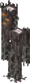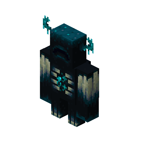 Warden is an extremely powerful hostile mob summoned by sculk shriekers in the deep dark biome. It attacks by swinging its arms downward, dealing the strongest melee damage of all mobs, and can also release a sonic boom attack that immediately strikes the target, piercing through obstacles and deals damage that cannot be reduced except by the Resistance effect. Since warden is completely blind, it relies on vibrations, smell, and touch to detect players and mobs to attack, and can therefore be evaded via sneaking, diversions (snowballs, arrows, etc.) and wool.